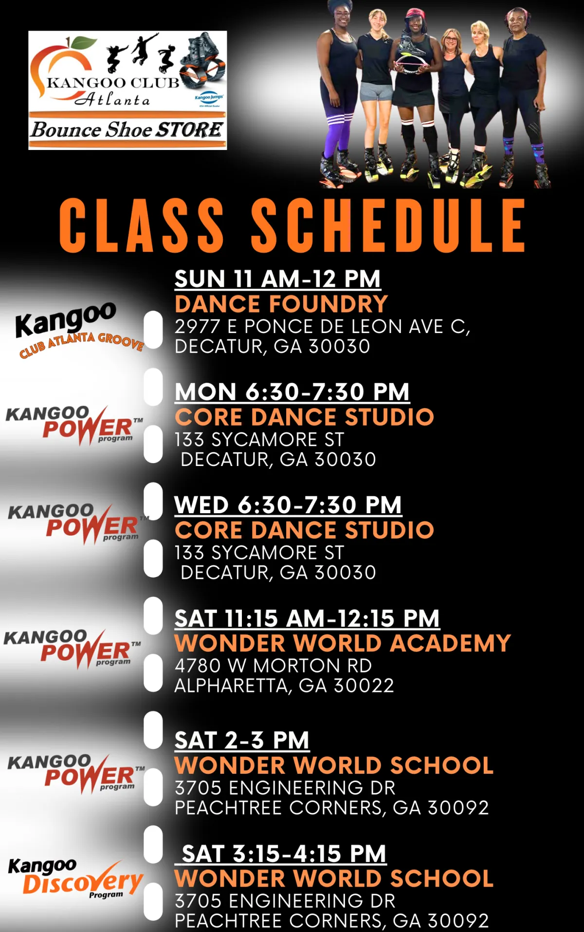 Locations: Classes are held at convenient locations in Decatur, Alpharetta, & Peachtree Corners GA, ensuring you have a great space to bounce